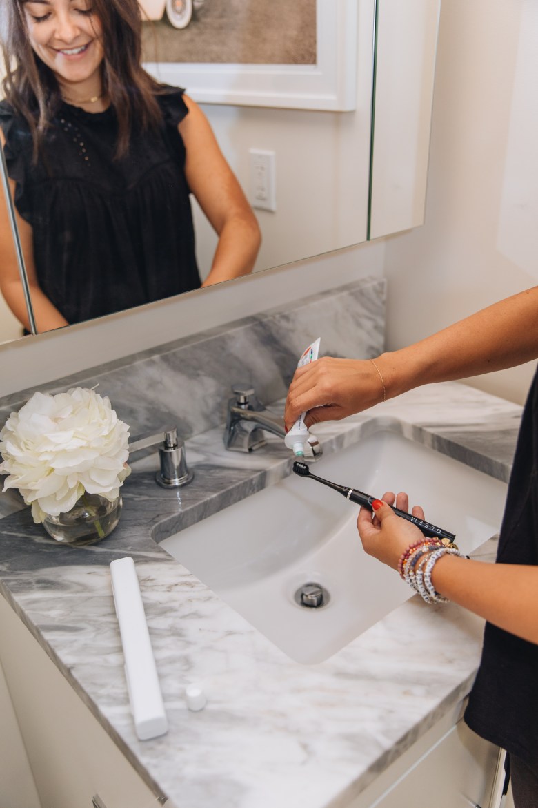 I have really sensitive gums, so I appreciate the gentle sonic vibrations that still create a beaming smile! There’s a built in timer that pulses every 30 seconds for the perfect 2 minute brush.