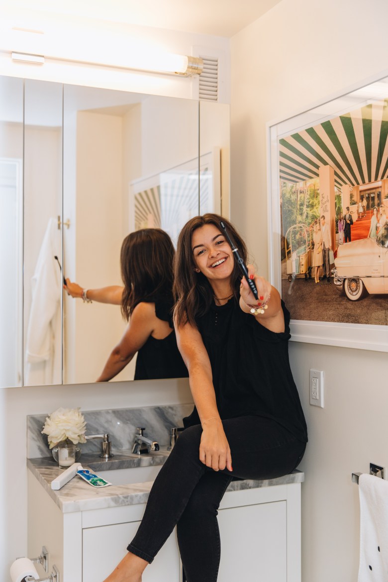 ..and how it looks in my bathroom! It’s also battery operated and super lightweight, so you can take on-the-go!